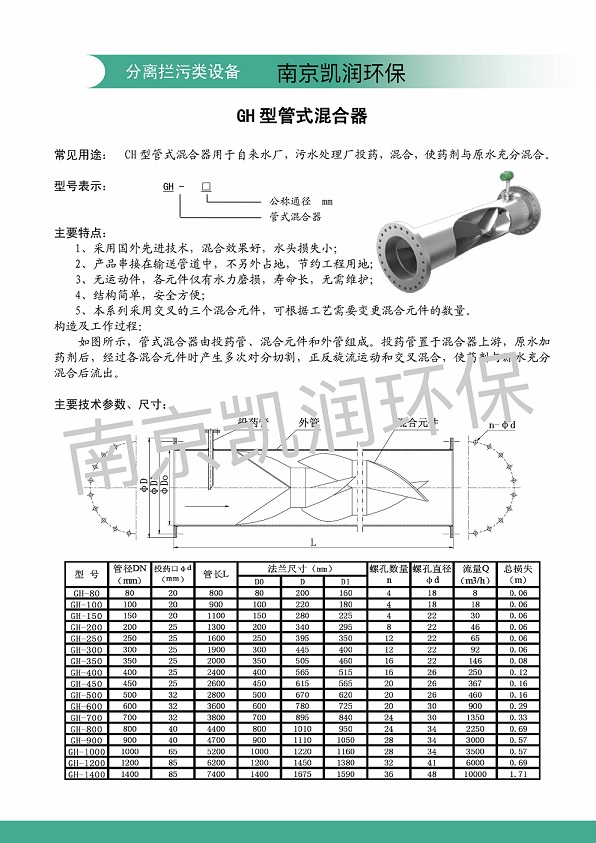 凯润环保混合加药设备静态不锈钢管道混合器定制销售GH-600